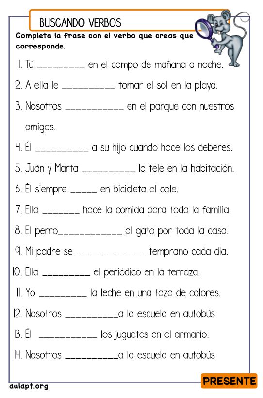 Ya sabemos que es el tiempo de un verbo en presente, ahora completáis está ficha, recordad PRESENTE.